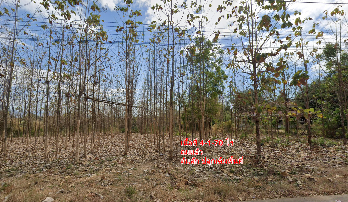 ใกล้แหล่งชุมชน การคมนาคมสะดวกสบาย มีต้นสักอายุ 10 ปี เต็มแปลง